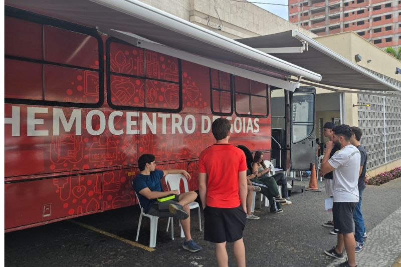 E para encerrar as ações propostas pelo programa extensionista, foi realizado nesta quarta-feira, dia 24 de setembro, o “Dia D de Doação e Cadastro”, com uma unidade móvel do Hemocentro de Goiás (HEMOG) no Campus para coleta de sangue e cadastro voluntário de doadores de medula óssea. A campanha contou com a participação de uma equipe multidisciplinar formada por médico, enfermeiro, biomédico e psicólogo, oferecendo suporte adequado, principalmente aos doadores de primeira vez.