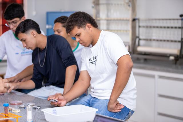 Nesta segunda-feira, os alunos do curso técnico em Agropecuária, do Pronatec participaram de uma tarde cheia de conhecimento. No Laboratório Multiusuários I, destinado às pesquisas da área das ciências agrárias, eles tiveram a oportunidade de aprender sobre o manejo de culturas em sistemas de cultivo, manejo de solos e proteção de plantas.