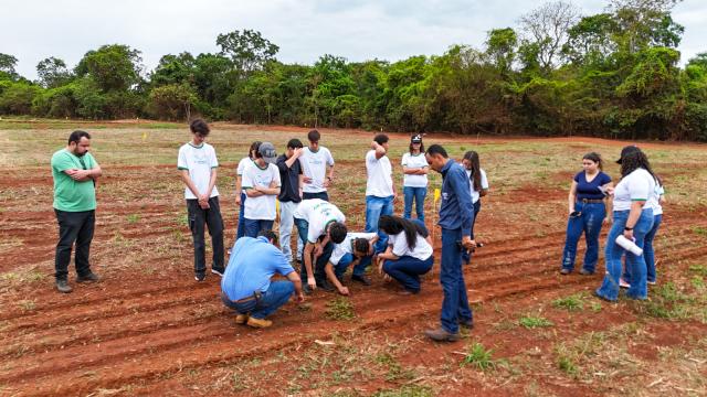 A atividade começou contou com a participação dos discentes do Mestrado em Produção Vegetal, Sebastião Soares, Eduarda Santana Soares, Thays Mendonça Oliveira e Arthur Cunha França, que falaram sobre sementes, solo, adubos, bioinsumos e grandes culturas.